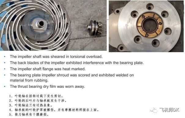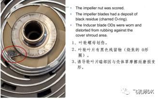 3、油泵低压级导流轮、叶轮正面、叶轮背面和相关轴承处发现摩擦,表明增压级部件的热膨胀导致间隙损失。