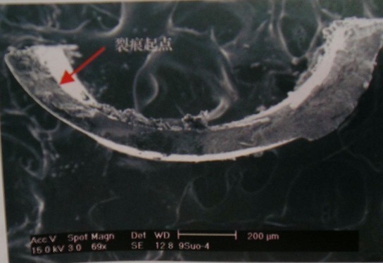 当应力超过某一值时,陶瓷、玻璃和硅等脆性材料易发生脆性断裂。断裂一般发生在有初始裂纹和刻痕的地方,当原有裂纹扩展到器件的有源区时,器件将失效。