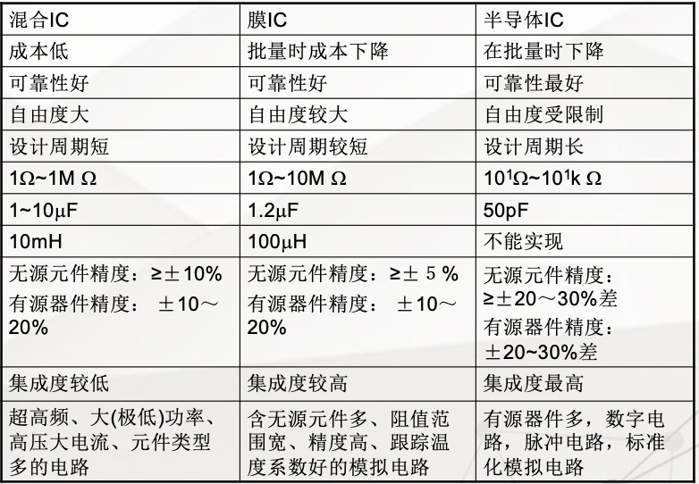 工艺:用膜工艺制作无源元件,用半导体IC或晶体管制作有源器件。