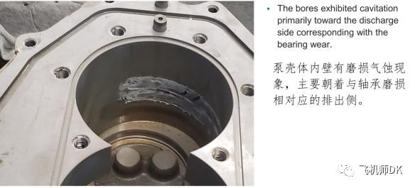 5、因齿轮级的进口压力不足,在一段未知的时间内(可能是一个或多个循环),在没有运行增压级的情况下继续运转,导致齿轮级的出口侧出现异常气蚀现象。